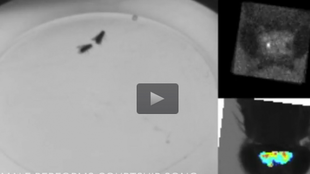 Researchers at the Kavli Institute for Brain and Mind at the University of California San Diego have developed a technique for imaging brain activity in a freely walking fruit fly. Working with one of the most common model organisms in science, Drosophila melanogaster, the team shows for the first time what goes on in the brain of the fly during courtship — when it’s unrestrained.