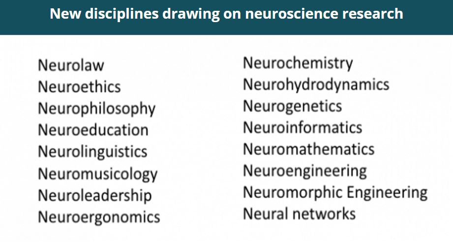 Numerous new disciplines have arisen over the past ten to twenty years based on neurosience research. One of the objectives of the Neuroscience Knowledge Network is to provide people and organizations exploring these new collaborations with Hubs that facilitate the evolution and promotion of these new fields of study and practice.